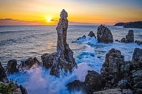 동해 여행에서 빠질 수 없는 추암 촛대바위는 아침 해돋이로 유명한 포토 스팟입니다. 바다 위에 우뚝 솟은 촛대 모양의 바위는 해가 떠오르며 환상적인 실루엣을 만들어냅니다. 주변에는 추암해수욕장, 산책로, 전망대가 잘 정비돼 있어 걷기에도 좋습니다.